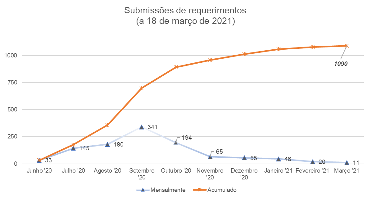 Requerimentos apresentados por mês